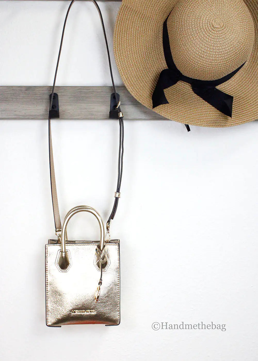 Style: Michael Kors Mercer XS North South Shopper Crossbody Bag (Pale Gold)