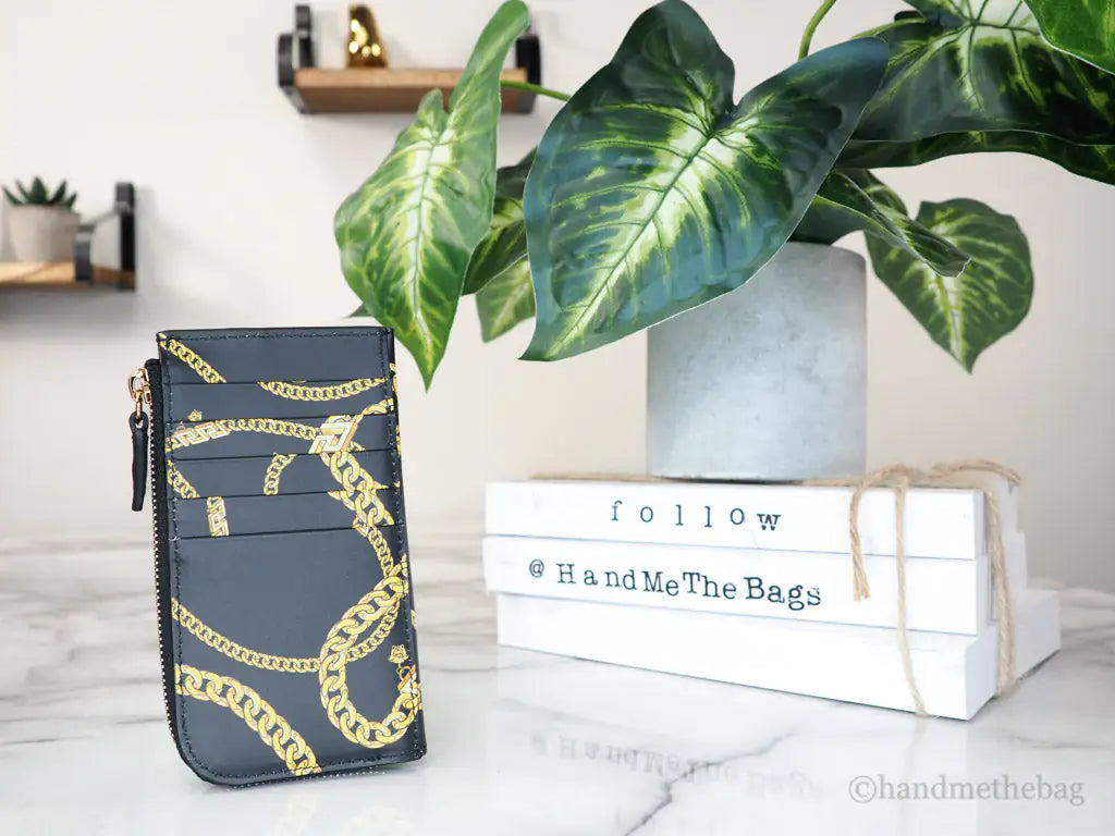 Features: Zip Compartment, 5 Card Slots, Medusa Head Accent